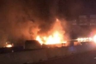 A tractor-trailer burst into flames on Route 128 in Lexington Wednesday night after a collision with a car.