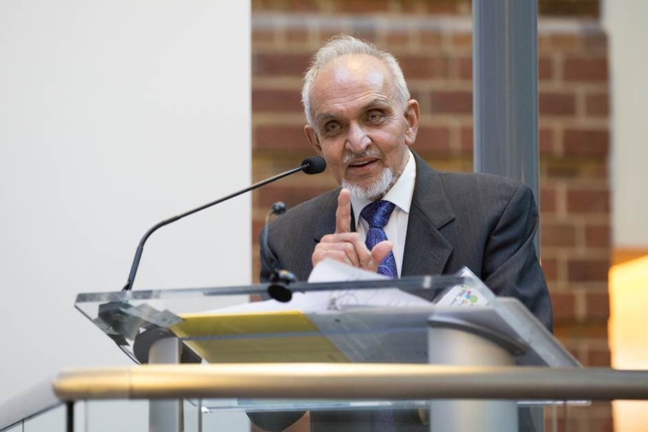 The honor was presented to Soparkar by Phil Stashenko, president of the Forsyth Institute, at Forsyth’s annual ‘A Taste & A Toast’ fundraiser. Stashenko recognized the impact of his colleague’s work in Kuwait, as well as Soparkar’s 50-year tenure in the Department of Applied Oral Sciences at Forsyth. He first came to Forsyth as an intern in 1951 from India, stayed on as a research fellow from ’52-’54, and returned to Forsyth permanently in 1962.