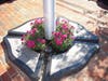 It is located at the base of the flag pole surrounded by a park-like setting with a red brick walkway, two curved fieldstone walls and two teak benches.