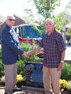 Retirees Gerald Jones and Alan Emery posed together in front of the new memorial with their hands locked together. Jones retired in 1982 after 33 years of service and Emery retired in 1984 after 22 years of service.