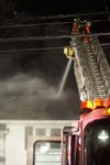 Shortly before 8 p.m., the Lexington Fire Department responded to reported basement fire at 71 Hancock St. and found a large amount of fire climbing and poking through the back of the building.