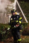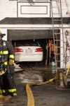 After firefighters smashed out windows and vented the roof, Lexington ladder truck shot a stream of water straight down over the garage area and other areas of the roof were soaked with hoses in the front yard and roadway.