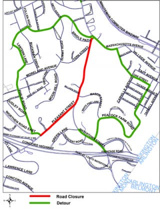LEXINGTON, MA – Pleasant Street in Lexington will close Friday night from Worthen Road East – prior to the Route 2 West on-ramp – to Massachusetts Avenue. The roadway will be closed from 8 p.m. Friday to 5 a.m.