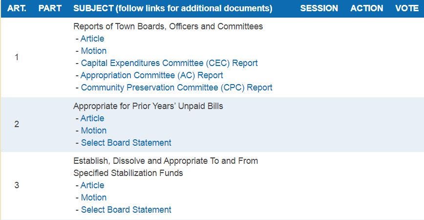 Votes of Town Meeting Members by Session