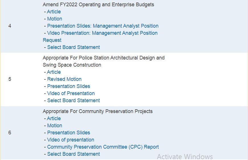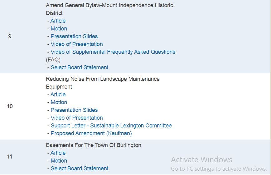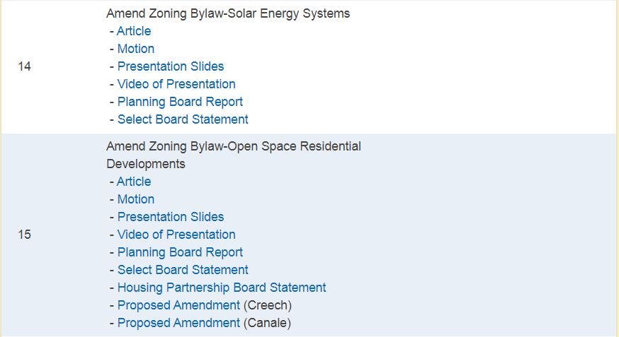 - Warrant (official list of Articles for this Special Town Meeting)