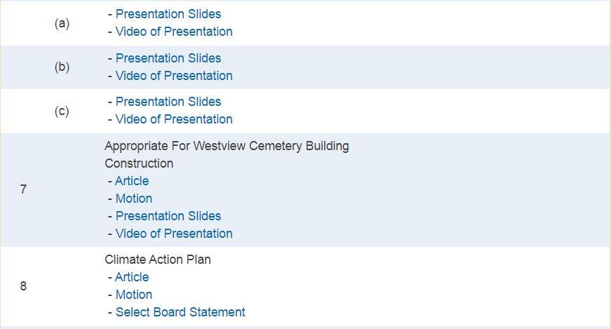 - Consent agenda, Consent agenda with descriptions
