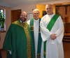 Photos by Marie Lagman. Father John Cronin, Father Paul Ritt (Pastor of the Lynnfield Catholic Collaborative), and Deacon Patrick Grode; Father John Cronin and Mary Anderson
