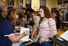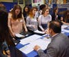Eric Iby (seated), a Mortgage Banker with The Federal Savings Bank, discusses mortgage options with Lynnfield High School students (from left) Abby Dickey, Rachel Collins and Rachel DiTullio during the recent Invest in Life Fair at the school. The students selected an occupation as part of the interactive fair and were given a salary and credit score. Local professionals met the with students to help them make important life decisions based on those factors.