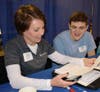 Molly O’Neill, left, Manager of the North Reading Office of The Savings Bank, discusses some of the options available to Lynnfield High School senior Paul Barrera during the