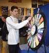 Lynnfield High School senior Brendan Bey takes a turn at the Reality Wheel during the recent Invest in Life Fair at Lynnfield High School. Brendan was among the local seniors who had an opportunity to learn how to budget and manage money from area professionals during the interactive fair. The wheel provided real-life financial situations the students could face in life after graduation, including losing a wallet, paying unexpected expenses, and winning a small sum of money in the lottery.