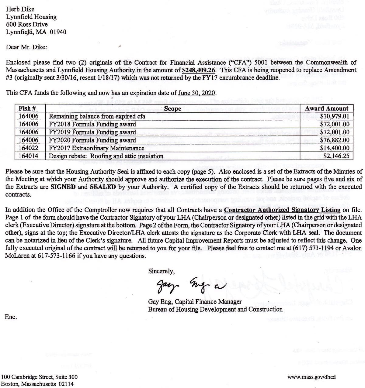 The Lynnfield Housing Authority has received $248,000.00 to use for capital improvements.