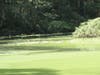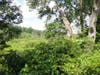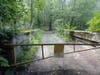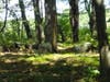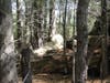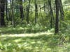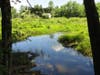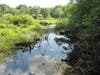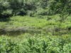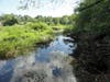An old railroad corridor now serves as a dirt road through the area, which is marshy and fairly heavily wooded.