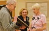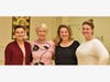 Photos by Marie Lagman. Bette Mahoney, Father Paul Ritt (Pastor of the Lynnfield Catholic Collaborative) and Beverly Merritt present Bette Mahoney with a gift as a token of thanks for her years of dedicated service to St. Maria Goretti Parish; Anne Welch, Bette Mahoney, Cara Palmerino, Andrea Gagnon