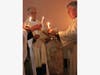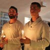 Left to right: Reverend Nancy Rottman (Pastor, Centre Congregational Church in Lynnfield), Dr. Laurence Heckscher (New England Pastoral Institute), and Father Paul Ritt (Pastor, Lynnfield Catholic Collaborative) surround the Paschal Candle which represents the risen Christ, a symbol of light dispelling darkness; Candlelight spreading through the nave of St. Maria Goretti Church, symbolizing the hope for healing; (left to right) Steven Kent and Deans House of Recovery co-founder Pierce Aliberti.