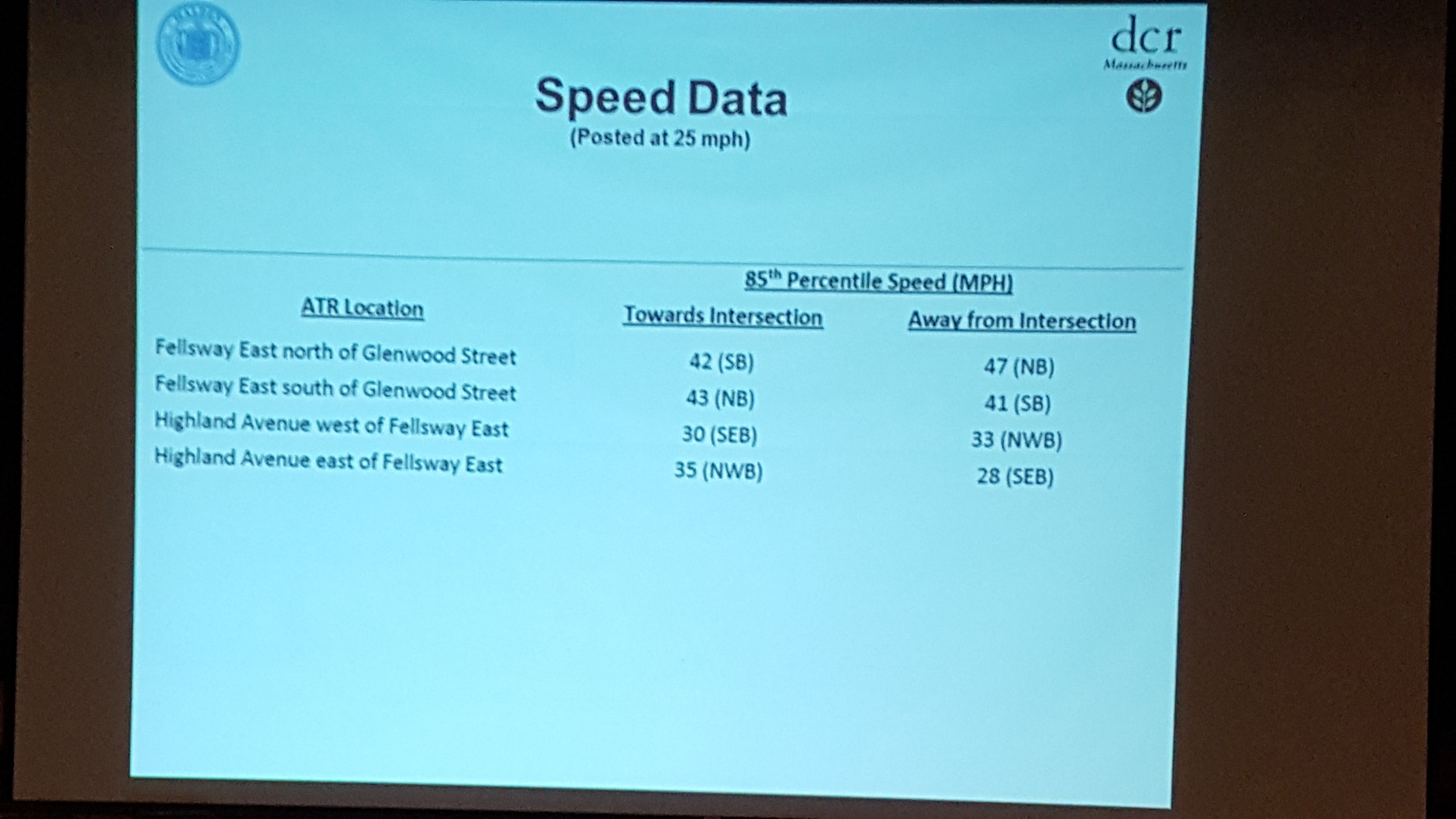 Here you see the average speed, all well above the posted limit of 25 miles per hour northbound. The southbound speed limit is posted at 30 mph. This was a very prominent concern for those in attendance.
