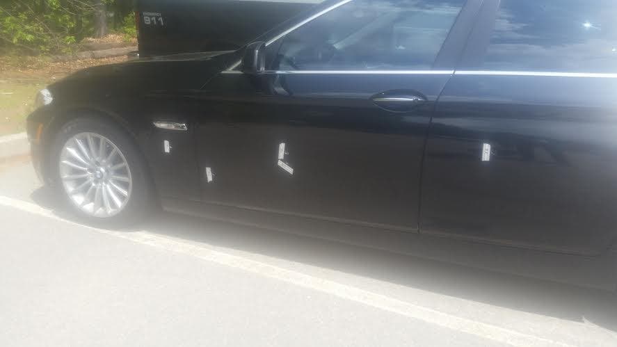 The victims were not hit by the bullets and there were no injuries according to police. Initially, the victims thought the shots were rocks or a B.B. gun, before realizing the car was hit with bullets later down the road.