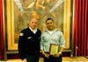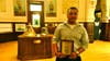 Fire Chief Jason Gilliland presented Crosby's Market employee Gary Orellana with a plaque recognizing his quick response to a fire allegedly set outside of Eastern Bank in January.