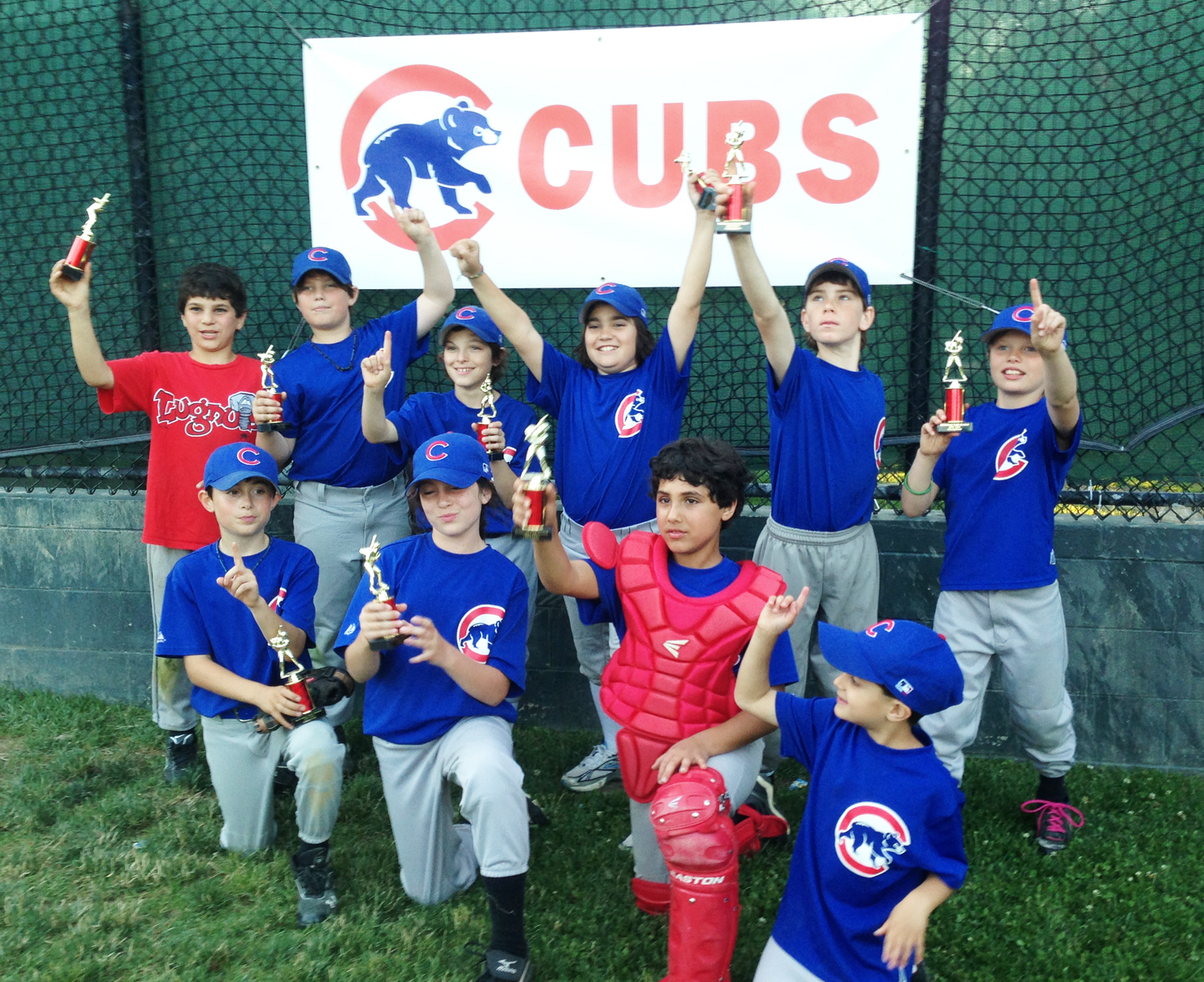 The unexpected ruled the early evening air at Gatchell’s Park on June 20th as the #2 seeded Cubs upset the undefeated Pirates with an 8-1 win before the crowd gathered to watch the finals on Majors Field. Up and down the Cubs line-up, players delivered keys hits against power pitching, and in the field, the Cubs made the critical plays to quiet the Pirates otherwise high-scoring offense. Defensively, catcher Cam Janock impressed the fans with a heart-stopping basket catch at the backstop in the 6th while Dylan Chardon, using a different borrowed glove each inning, snagged a snowcone pop-up at third to make the improbable play. Dahlia Galante played a wicked first base and had a critical hit to the outfield, Henry ‘Gee-Zee” Segee vacuumed up ground balls at 2nd base, Brendan ’Willie’ Willett continued his assault in the lead-off role and caught a clean 2 innings to start the game. Dylan Leveroni smashed anything near or above the plate and James Maniaci brought his big bat to a big game with a hard hit to left while the ever steady Reid Tully provided masterful defense and offense in his leadership role. Just-in-time AA call-up Sami Loughlin contributed big time with a key hit in the first inning coupled with a defensive gem in center field in the bottom of the 6th. The Cubs quickly scored 3 runs in the first and a 5 in the 5th en route to the Victory. In his start, Cam Janock delivered a much-needed commanding 2 innings on the mound and turned the game over to the smooth and steady Cole Riskin who pitched four shutout innings, and supported his own efforts with two big hits and his third out catch in the bottom of the sixth to seal the win. The Cubs 2013 roster, which shrunk to just 9 in the last week of the season, consisted of Dylan Chardon, Dahlia Galante, Trevor Gilligan, Cam Janock, Dylan Leveroni, James Maniaci, Cole Riskin, Will Savage, Henry Segee, Reid Tully, Brendan Willett and coaches Gregg Riskin and Harry Janock.
