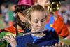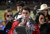 Marblehead High marching band members traded their traditonal red uniforms for Halloween masks, hats and capes Friday night serenading the crowd at halftime with Radiohead numbers.