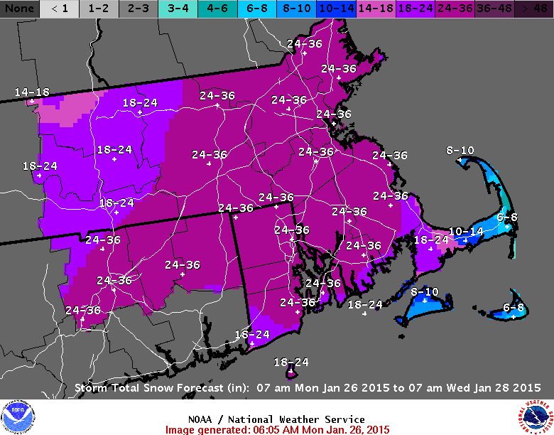 - WCVB:24+ inches