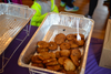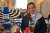 Inside the shul, families gathered on the hardwood floor and under hanging lights. They chatted. They ate latkes and apple sauce, and powdered donuts filled with jelly.
