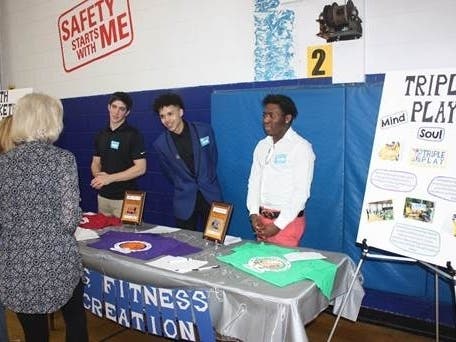 Photo caption: At the Club’s 75th Anniversary Celebration, Tyler Lechman, Daisjaugn Jermaine Bass, and Sincere Redd, staff members at the Boys & Girls Clubs of MetroWest, speak with guests about the Sports, Fitness & Recreation programs offered by BGCMW.