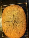 Anyway, teff is gluten-free, and I thought I’d try to make a bread with it, so I scanned YouTube and found an instruction video on sourdough starter culture using teff. Then I pieced together a sourdough bread recipe from a dozen or so sources on the Web, and this morning I baked my first bread of any kind, ever. The result in in the pictures above. Really not bad for a beginner…