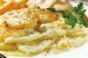 Put the butter with the cream in a large saucepan and bring just a boil. Finally dice what's left of the garlic and add it to the butter and cream, along with the sliced potatoes, salt, and pepper. Gently simmer for 8 minutes.