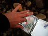 At some point during the loss of the Go Pro my lure’s two sets of treble hooks had become embedded in the mesh netting of my back pack. Without really giving it much thought I took my pliers and yanked the hooks free from the mesh-and directly into my finger.