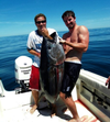 The most common way to target giants here is to anchor up in deep water and start chumming. It’s usually not too difficult to jig up live bait like mackerel or whiting.