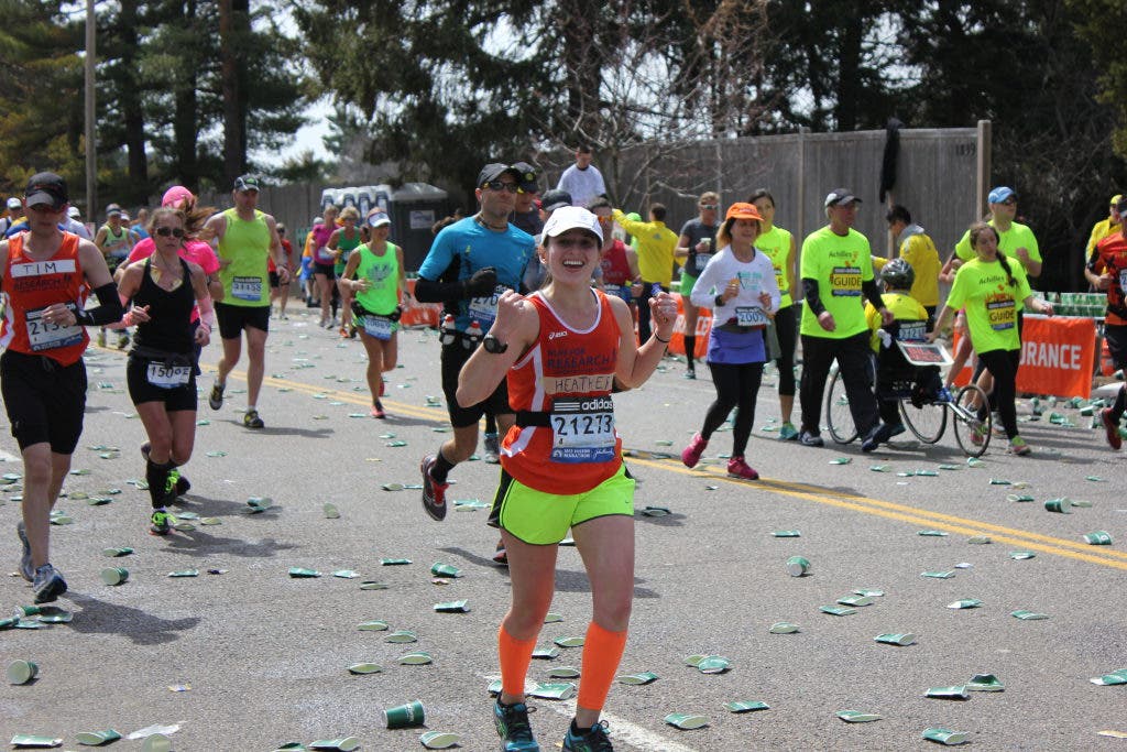 Just past the hospital I saw my parents, my husband and my father-in-law. They were holding signs and screaming. But there was no time to stop. I had to keep my almost perfectly even splits. I quickly ran by and made the famous right turn at the Newton fire station. Now the race was getting started: Heartbreak Hill.