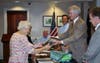 Mrs. Mann was also given a framed photograph of herself and fellow crossing guards from an earlier time, when she was newly hired.