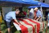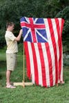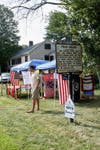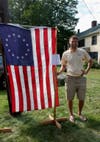 Initially, members of the historical society were concerned how to display the flags but the weather cooperated and they were able to set up on the Peak House's lawn.