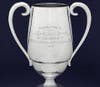 "This beautiful and historic sports artifact, crafted by Frank W. Smith Silversmiths of Gardner, Massachusetts, stands 11 inches tall (14 1/8" when seated on its custom-made stand) and is 9" wide, including the handles. It comes atop a period round wooden stand with black lacquer finish. The trophy is also accompanied by the original photograph by Carl Horner, taken on the first base line of Fenway Park just before the victory parade."