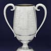"This beautiful and historic sports artifact, crafted by Frank W. Smith Silversmiths of Gardner, Massachusetts, stands 11 inches tall (14 1/8" when seated on its custom-made stand) and is 9" wide, including the handles. It comes atop a period round wooden stand with black lacquer finish. The trophy is also accompanied by the original photograph by Carl Horner, taken on the first base line of Fenway Park just before the victory parade.