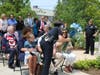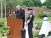 Selectman Chair, Gus Murby spoke briefly and Kim McCarthy thanked everyone involved and spoke lovingly about her husband. The National Anthem was sung by Boy Scout Paul Narkewich, retired MPD Chief Bob Meaney played "Amazing Grace" on the bagpipes and Fr. Steve Zukas, Pastor at St. Edwards said an opening prayer and gave a blessing at the Memorial. Town Administrator Kristine Trierweiler and Selectman Mike Marcucci also attended.
