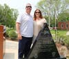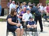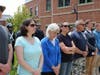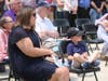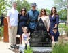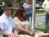 Kim McCarthy, and three of her five children, daughters Kasey and Courtney and son Patrick, along with her grandson and granddaughter sat in the front rows of seats placed outside facing the Memorial and podium.