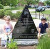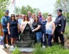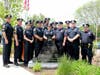 Family members and police groups all posed with the Memorial after the ceremony and enjoyed refreshments in the station donated by Country Kitchen Donuts of Millis.