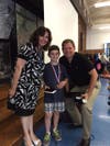 Image #1 - Mrs. Olson, Principal, Mr. Kuehl, and John Barrette, Grade 3 Zaner-Bloser Massachusetts winner. Image #2 - Mrs. Olson, Principal, Mrs. Dion, and Allyson Bligh, Grade 2 Zaner-Bloser Massachusetts winner.