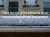 Ice dams are those sheets of ice and snow that form at the edge of your roof. They often look beautiful and result and in long, lovely icicles hanging from your eaves. I saw a lot of them driving around Medford.