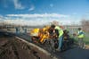 After the paths surrounding the field were repaved, 27,500 square feet (over .6 of an acre) of sod was laid in the section of the field that had been disturbed by the National Grid Project. Prior to laying the sod, the field's subsurface was reconstructed to match the adjoining, undisturbed section and includes special soils, pea stone, and drainage piping. The sod will remain dormant during the winter, and the field will be playable by early fall. The Park at River's Edge will at that time publish rules and hours of availability with respect to use of the field by both groups and individuals.
