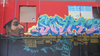 Walls not covered in hand-holds and climbing lines are adorned with graffiti art. Brand Rockwell, one of the artists, who works with Team Rekloos, was at Brooklyn Boulders Tuesday to work on a huge mural of a Red Line train, among other things. He said some of the best graffiti artists in Boston and beyond are represented on the walls.