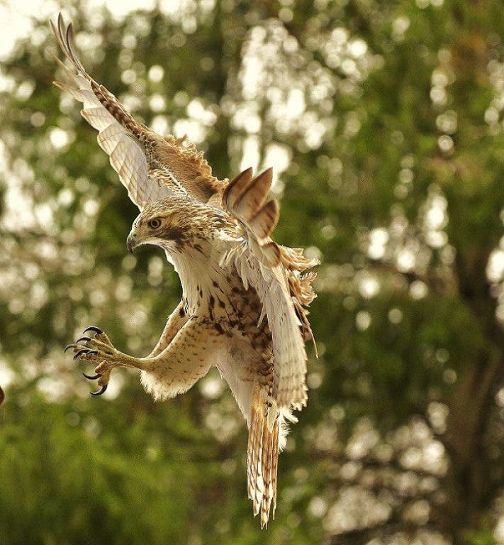 Birds of prey are also known as raptors, and they are hunting birds characterized by hooked beaks and powerful grabbing feet armed with sharp talons. Raptors can also boast the best eyesight and the sharpest hearing in the animal kingdom. Raptors include eagles, hawks, falcons and owls. The Birds of Prey program, which incorporates five live birds, gives an overview of these different categories. The program is designed to explain predation, the birds' place at the top of the food web, their different hunting adaptations and their status in a rapidly changing world. Because many birds of prey are declining in number, this presentation also features one or more of the endangered raptors that we care for, and explains why these species face an uncertain future.