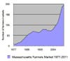 The Melrose Farmer's Market was started in 1994 by Sally Frank. Sally wanted to be able to buy fresh local corn without driving large distances. The Melrose Farmer's Market is one of the longest running farmer's market in the area. Massachusetts Department of Agricultural Resources has record of the number of farmers markets going back to 1977 where 7 markets existed. In 1994 there were 79 farmers markets in Massachusetts. Now, in 2011, there are 244 farmers' markets - more than triple the number since Sally began - she was clearly at the start of the farmers' market upward booming curve.
