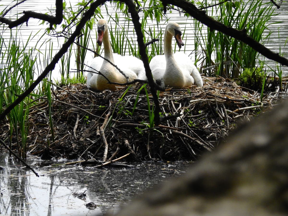 As swans are territorial protecting their charges, visitors to the area of the nesting site were chased away.