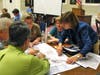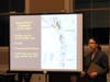 After soliciting feedback on a series of multiple choice questions by using remote keypads handed out to those in attendance—26 people answered each question—the meeting broke off into five small groups.