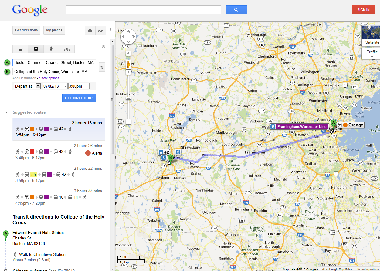 This effort’s goal is to make all transportation services in Massachusetts available to commuters, visitors and other travelers through Google Maps. The enhanced access to transit routes and schedules through this universally accessible tool improves everyone’s ability to plan travel throughout the Commonwealth whether it’s for commuting to and from work or for leisure. An individual can now use Google Maps online or the Google Maps app for Android or iPhone to plan a trip, for example, from the Boston Common to Worcester State College – a task that previously required searching for routes and schedules across multiple websites. The directions can now guide an individual from one transit station to another with detailed walking directions for the initial and final portions of the trip.