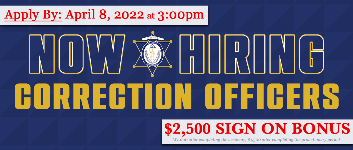 BILLERICA, Mass. – The Middlesex Sheriff’s Office is extending the registration period for those interested in taking the correction officer entrance exam to Friday, April 8 at 3:00 p.m.
