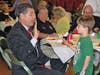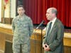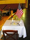 On Memorial's Hall stage sat a lonely chair at a small table set for dinner, but holding only a small plate with a slice of lemon and salt, a symbolic gesture to those veterans who are prisoners of war or missing in action. Bob Driscoll—chairman of the Melrose Veterans Advisory Board, a major in the Air Force Reserves and a Melrose firefighter—read a description explaining the symbolism of each element of the table.