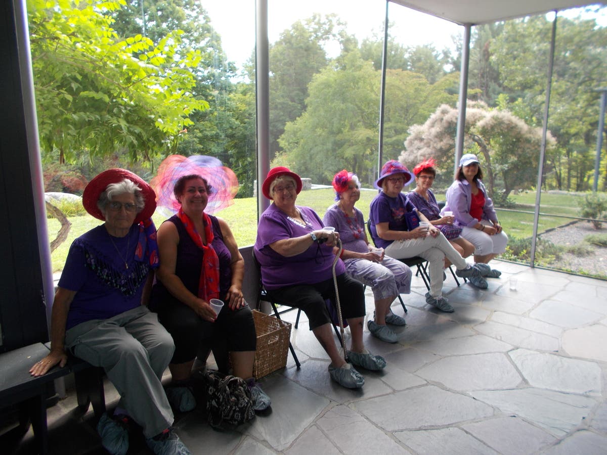 August 30th, our last outing for this month, and it was off to Lincoln to tour the Gropius House. The Gropius House was built in 1938 by German architect Walter Gropius. The weather was still HOT but had dropped to 89 degrees, (better than the past few days that reached 105). Two air conditioned cars and we were on our way to have a bit of culture, a great lunch,(of course) and another Red Hat day.